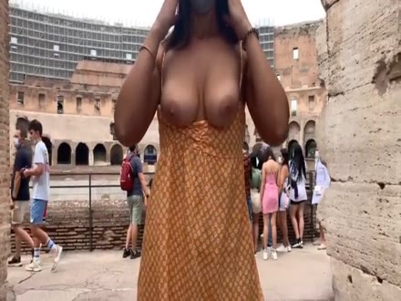 Esce le tette dentro al Colosseo