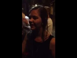 Ragazzi in un locale si divertono con una ragazza straniera in erasmus facendole dire cose zozze