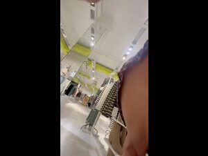 Rgazza filmata sotto la gonna in un negozio di abbigliamento è senza mutande e si vede tutta la patata